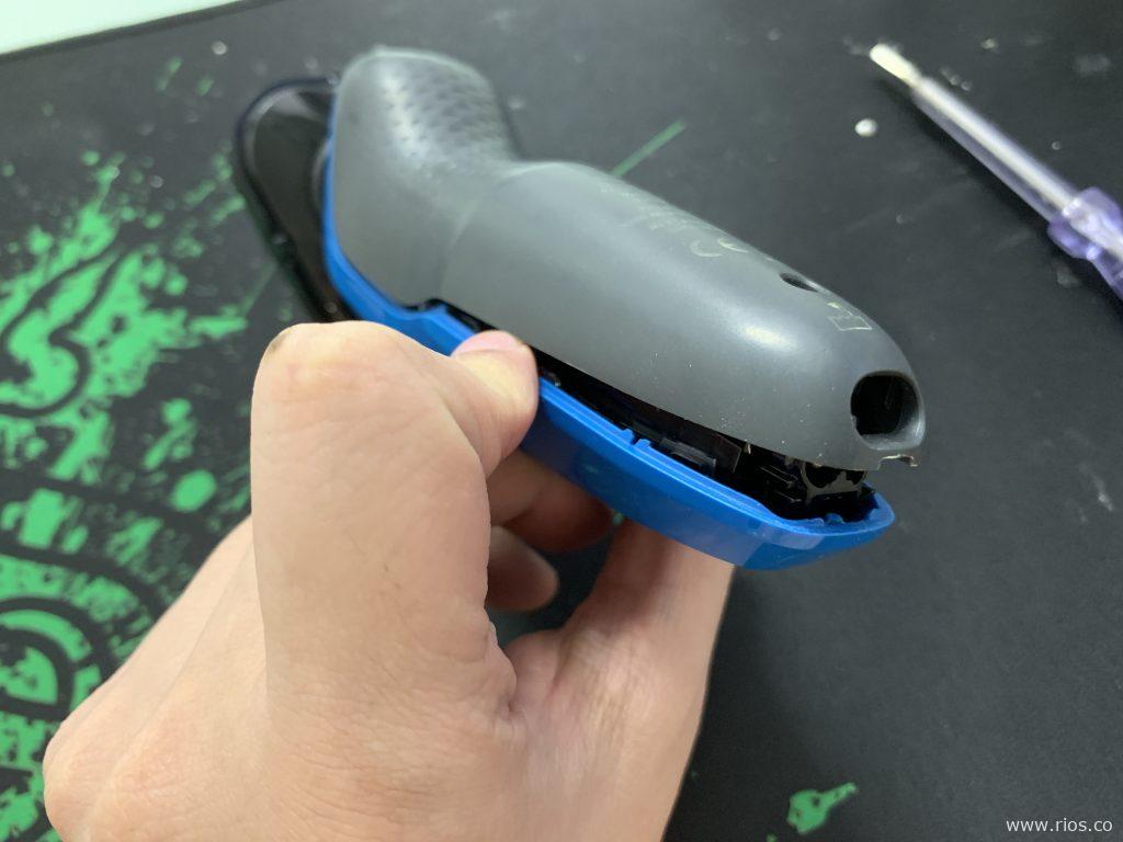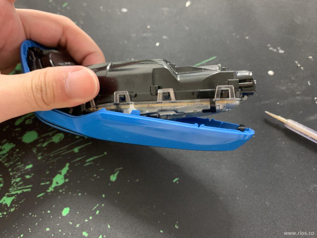 再在底部(黑色與藍色中間的洞),用一字批強行撬開,這部份需要花一些力氣!不用怕,大力一點就可以。