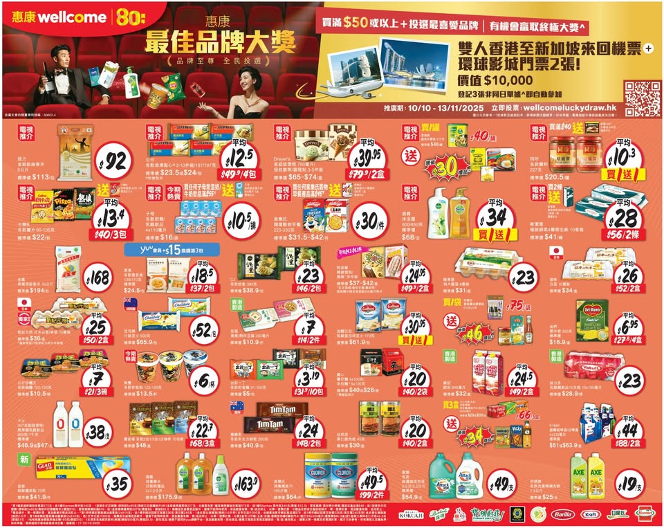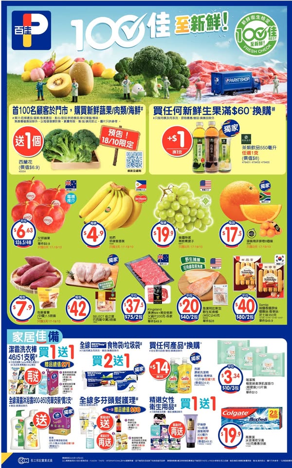 以是本日超市(百佳、惠康、萬寧、屈臣氏、OK、7-11)的最上優惠。 延伸閱讀: 10月9日各大超市優惠(惠康…