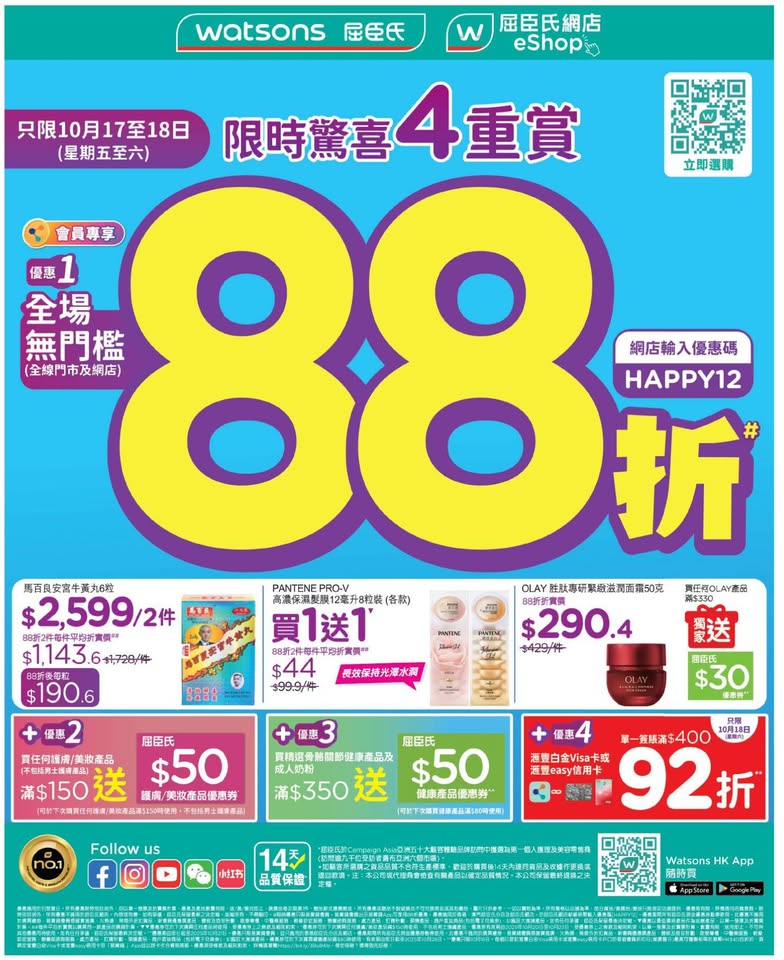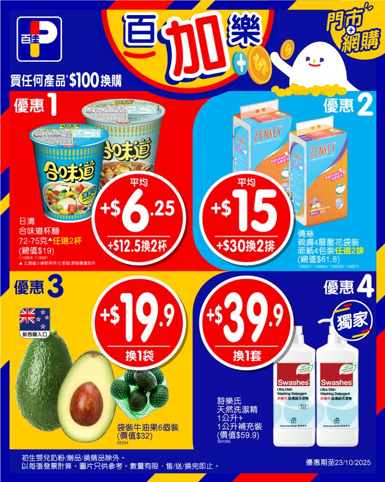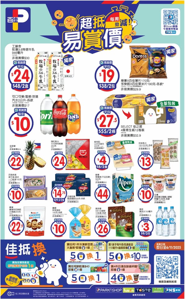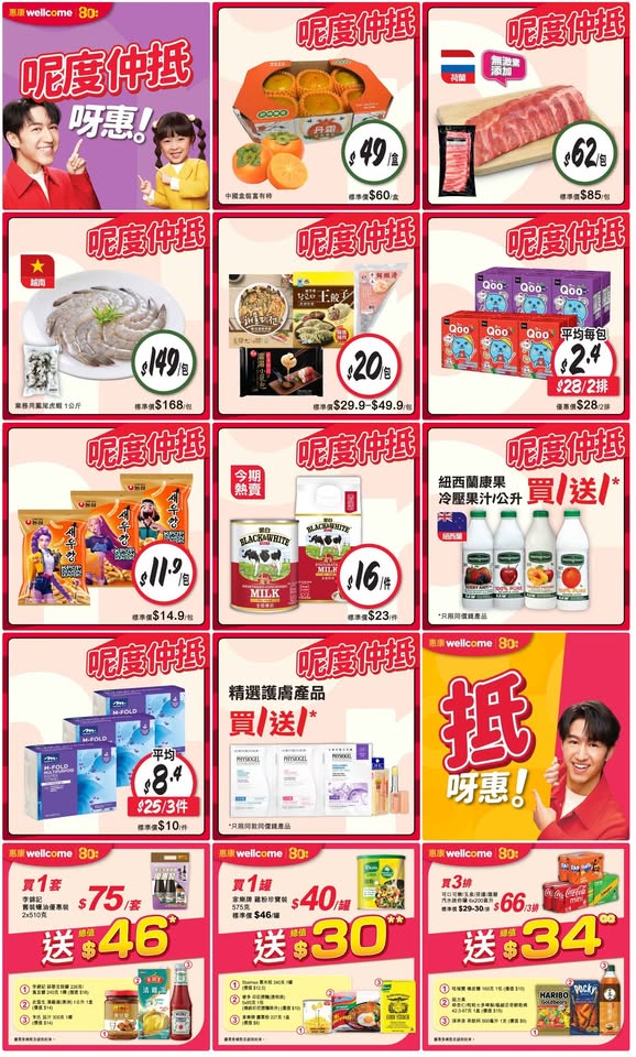 以是本日超市(百佳、惠康、萬寧、屈臣氏、OK、7-11)的最上優惠。