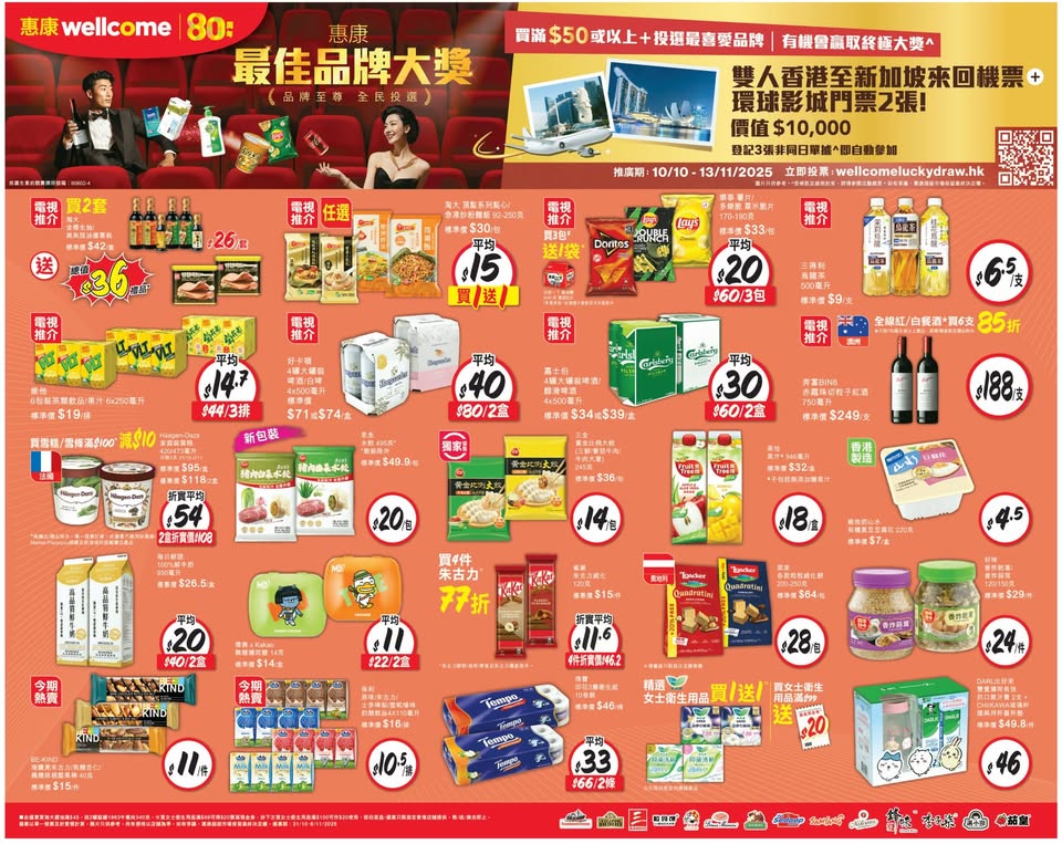 以是本日超市(百佳、惠康、萬寧、屈臣氏、OK、7-11)的最上優惠。 延伸閱讀: 10月10日各大超市優惠(惠…