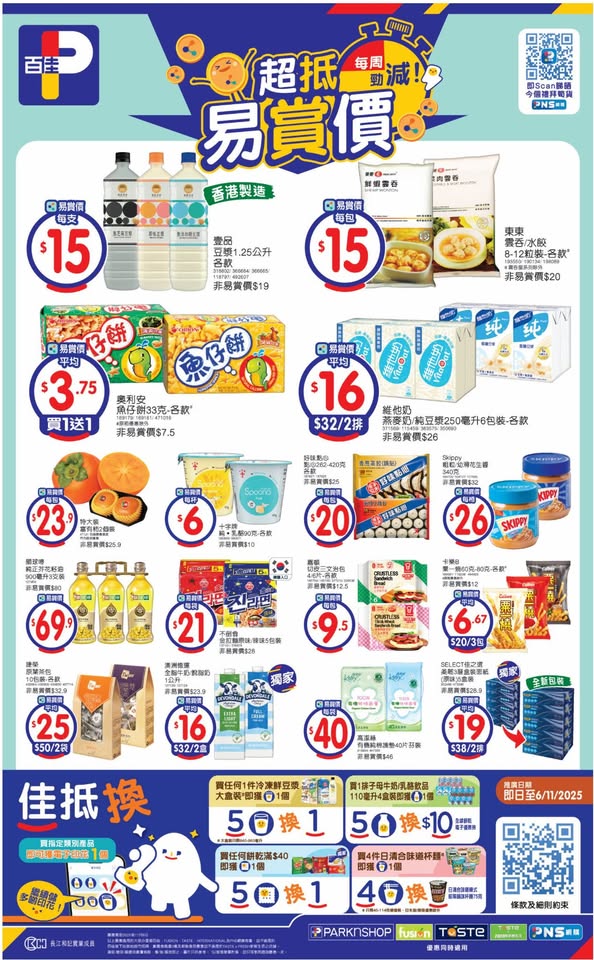 以是本日超市(百佳、惠康、萬寧、屈臣氏、OK、7-11)的最上優惠。