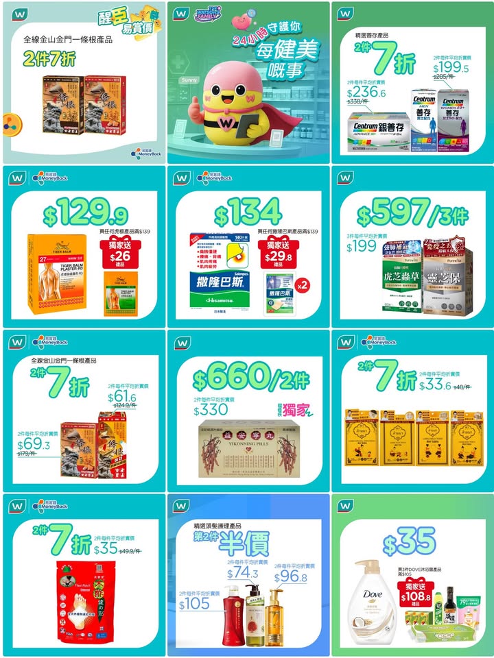 以是本日超市(百佳、惠康、萬寧、屈臣氏、OK、7-11)的最上優惠。