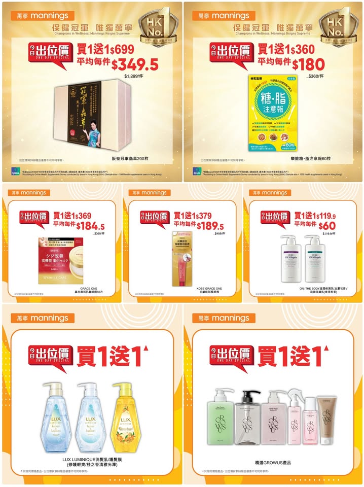 以是本日超市(百佳、惠康、萬寧、屈臣氏、OK、7-11)的最上優惠。