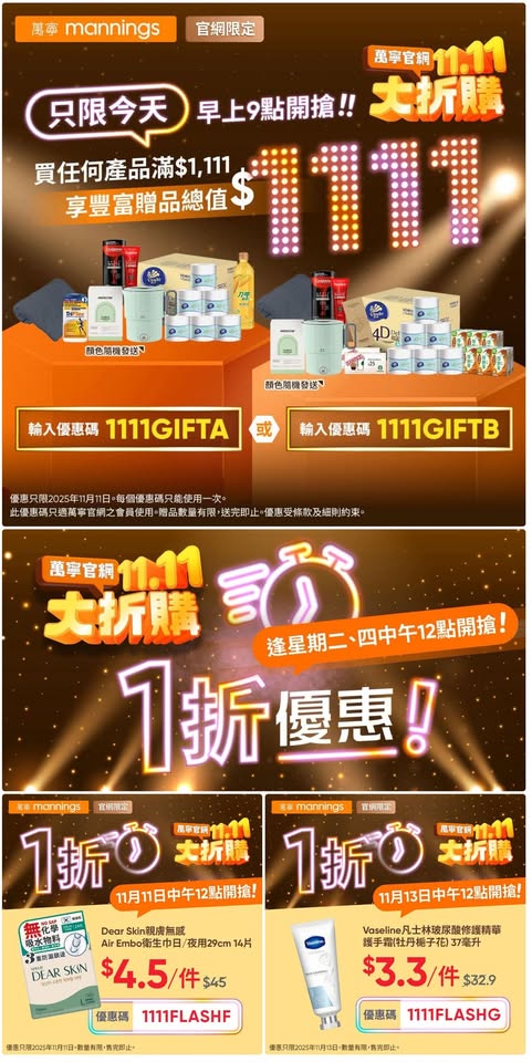 11月11日各大超市優惠(惠康、百佳、7-11、OK等)