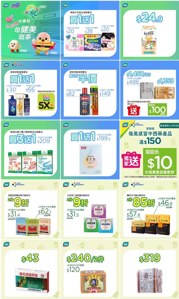 以是本日超市(百佳、惠康、萬寧、屈臣氏、OK、7-11)的最上優惠。