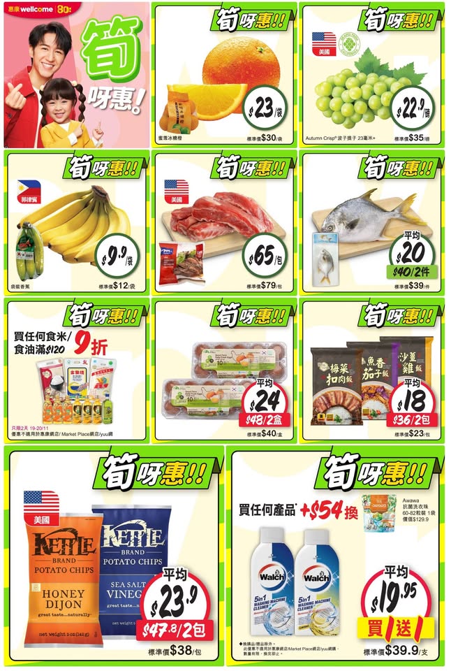 以是本日超市(百佳、惠康、萬寧、屈臣氏、OK、7-11)的最上優惠。