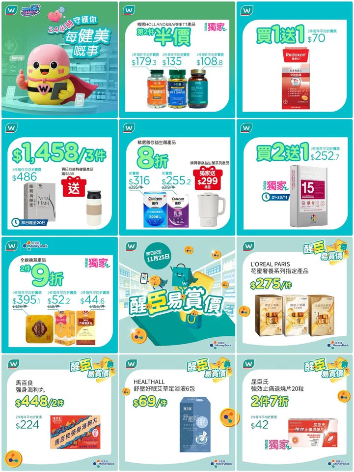 以是本日超市(百佳、惠康、萬寧、屈臣氏、OK、7-11)的最上優惠。