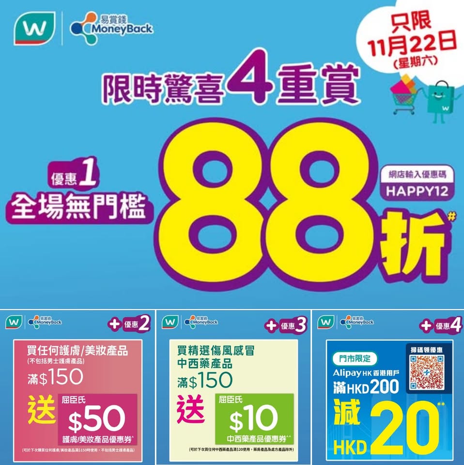 以是本日超市(百佳、惠康、萬寧、屈臣氏、OK、7-11)的最上優惠。