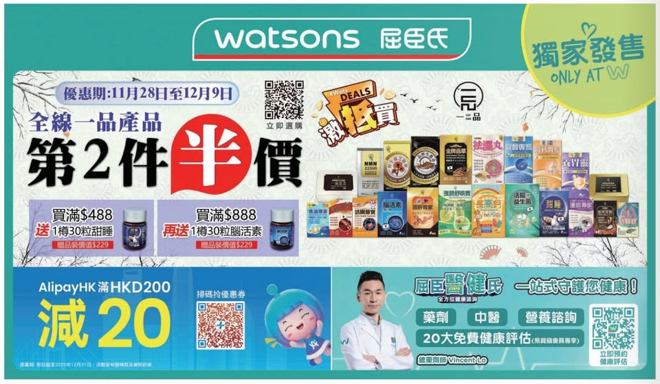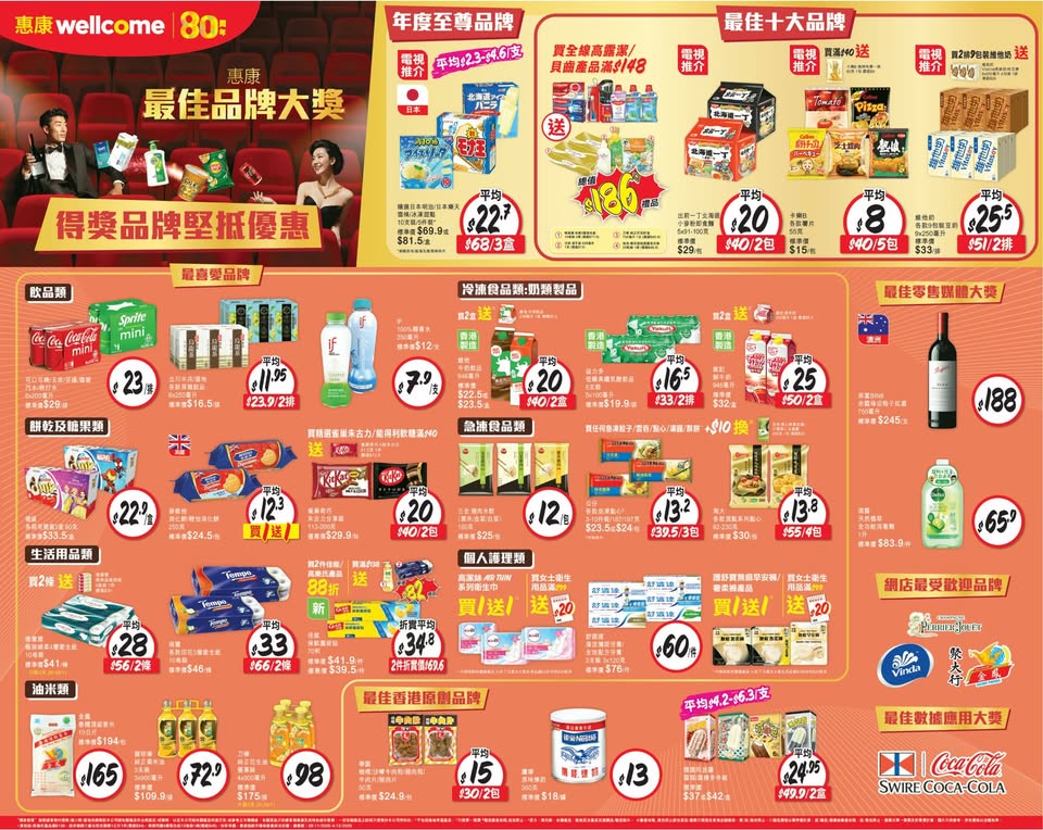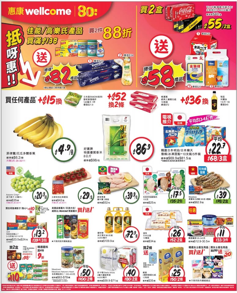 以是本日超市(百佳、惠康、萬寧、屈臣氏、OK、7-11)的最上優惠。
