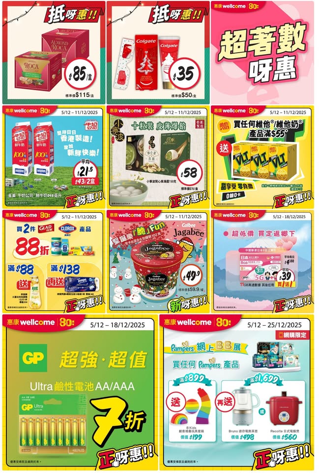 以是本日超市(百佳、惠康、萬寧、屈臣氏、OK、7-11)的最上優惠。