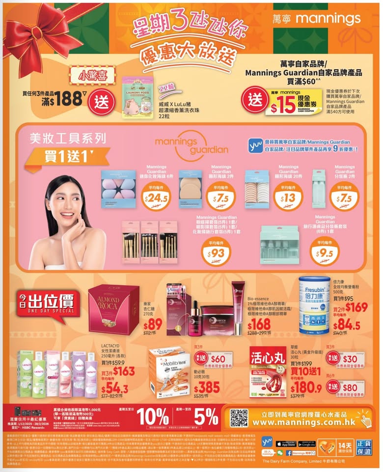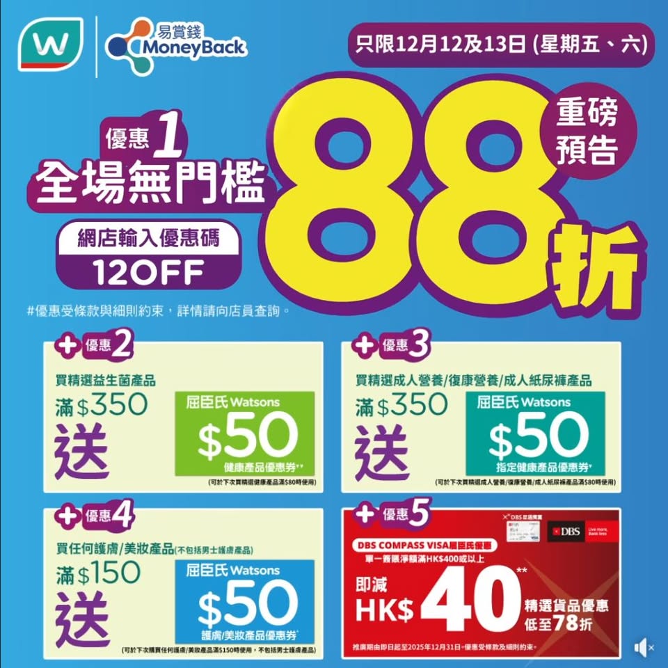以是本日超市(百佳、惠康、萬寧、屈臣氏、OK、7-11)的最上優惠。