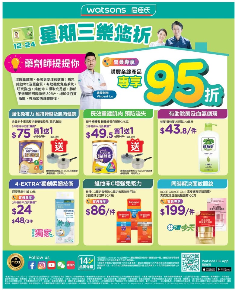 以是本日超市(百佳、惠康、萬寧、屈臣氏、OK、7-11)的最上優惠。