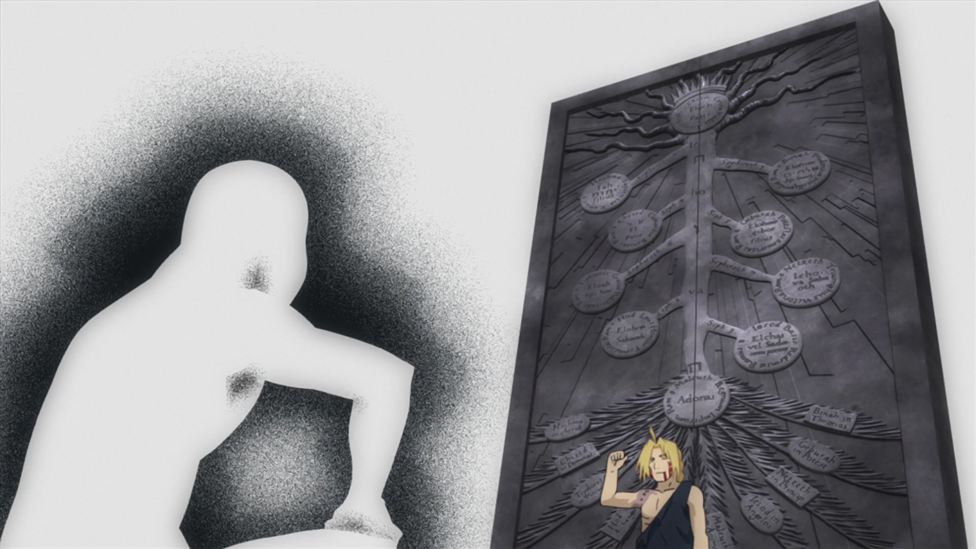 在另一邊,奧莉薇·米拉·阿姆斯壯少將與伊茲米·卡迪斯在清理中央軍殘黨時,談及了「人體鍊成」的禁忌與「真理之門」的代價。伊茲米以過往痛苦的經驗指出,開啟大門的人都是為了找回珍愛之人,而奧莉薇則回想起愛德華·愛力克那種不願再犧牲任何人的堅定眼神。儘管這種想法在残酷的戰場上顯得天真,但奧莉薇亦承認這種正直的信念確實令人動容。