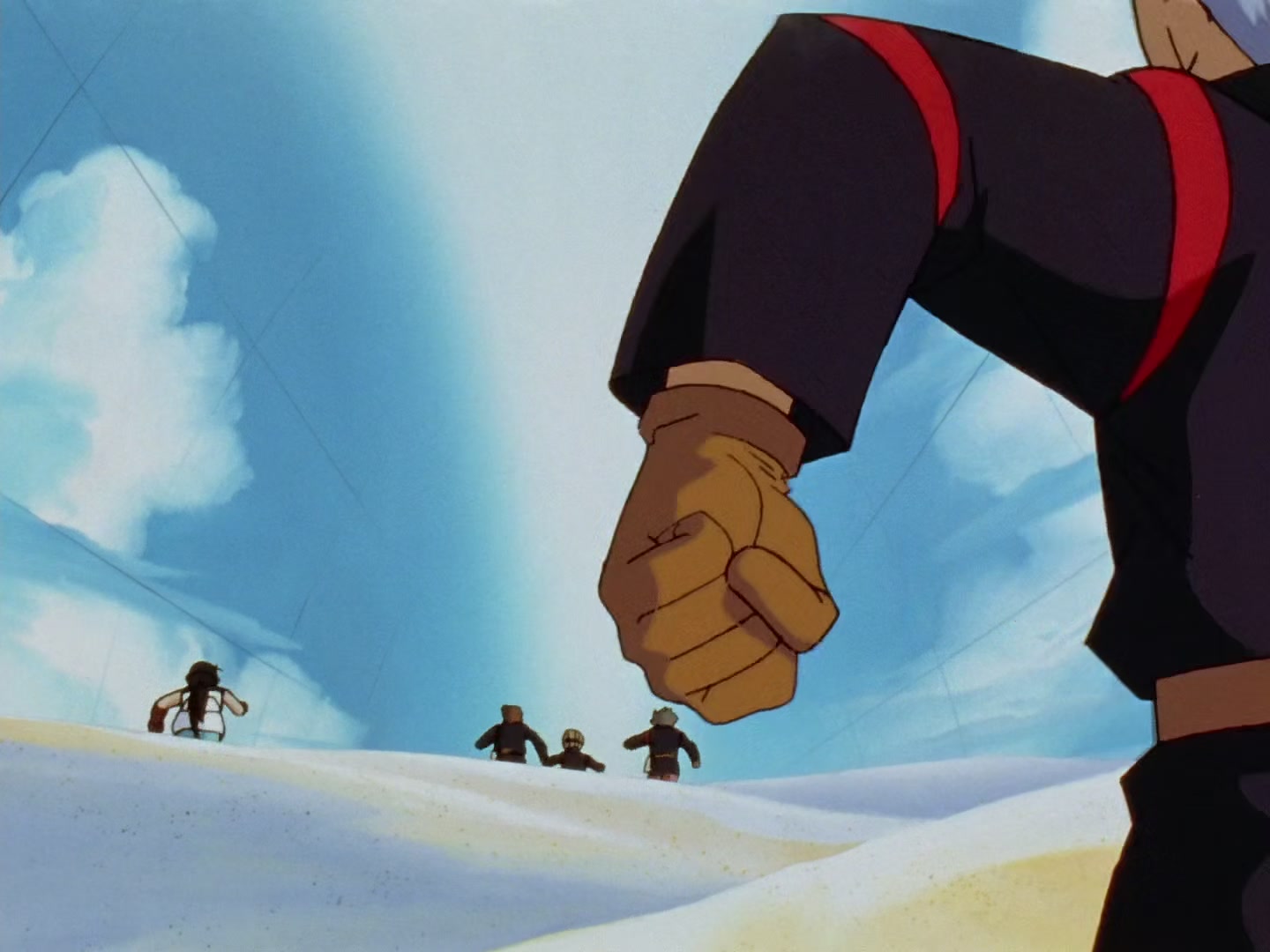 第二棒由二郎丸駕駛「新三角箭」對陣喬。二郎丸因初次參加世界大賽過度緊張導致表現失常,而喬則因害鷹羽龍受傷而心懷愧疚,故意放慢速度不願超車。在場邊觀戰的鷹羽龍看穿了兩人的心思,大聲喝斥兩人要尊重比賽,並鼓勵二郎丸拿出鬥志。受到激勵的喬終於全速前進,二郎丸也展現出「新三角箭」的招牌動作「爬牆功」頑強抵抗,最終兩人幾乎同時交棒。賽後喬正式向鷹羽龍道歉,兩人達成和解,約定下次再堂堂正正一決高下。隨後,比賽進入第三棒三國藤吉與米勒的對決。
