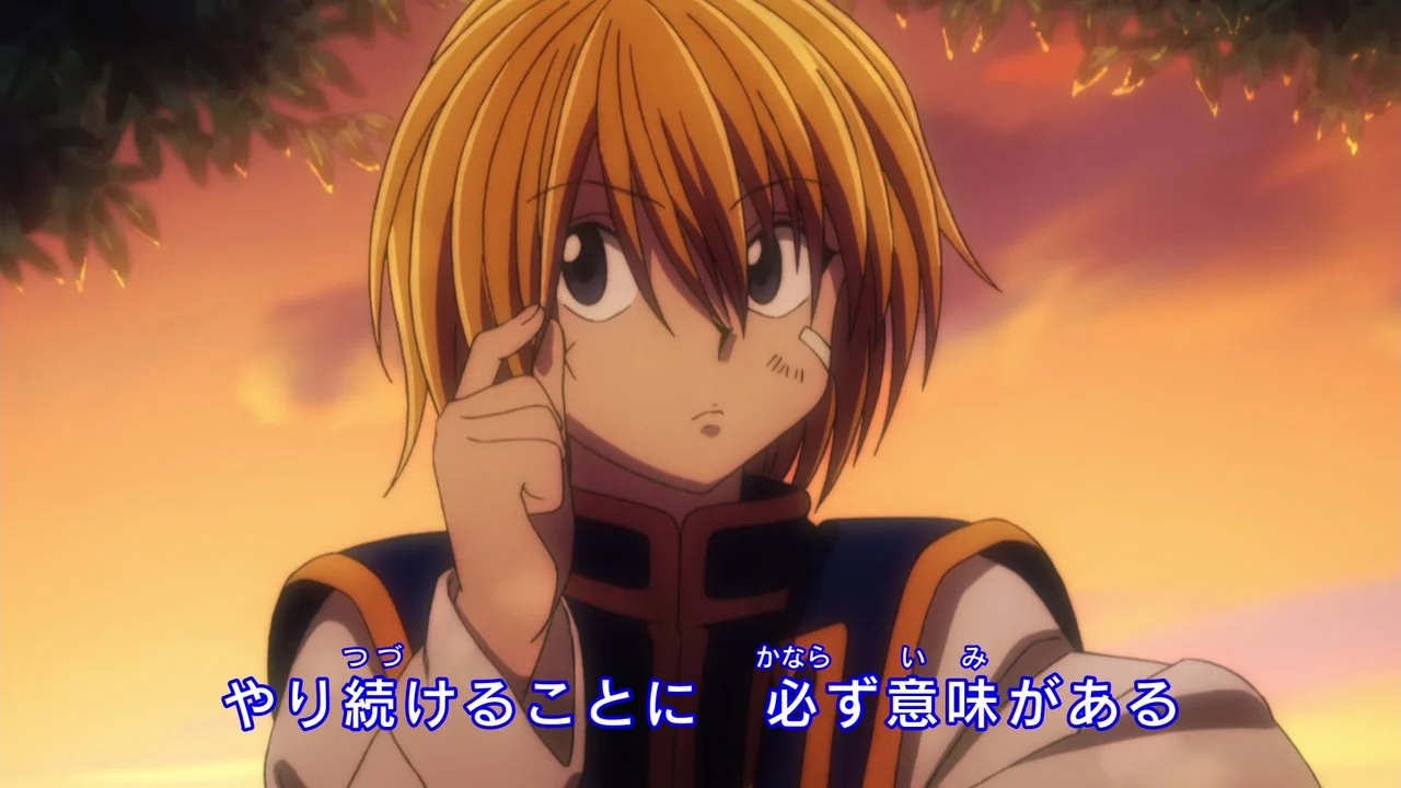 在小傑於天空鬥技場與疾鬥一戰受重傷後一個月,其身體展現出令奇犽驚訝的恢復速度,僅用一個月便完全痊癒。奇犽為小傑帶來了熱門選手西索對戰華石鬥郎的比賽門票,並分享了西索過去八勝三敗(三敗均為不戰而敗)且從未真正輸球的驚人戰績。然而,代理師父雲古突然現身,嚴厲要求小傑必須信守承諾,在兩個月內禁止參加比賽、修煉念能力或調查念。雲古甚至禁止小傑觀看西索的比賽,認為這也是調查念的一環。小傑決定信守諾言留在房間進行「點」的基礎修煉,而雲古看著他們日益平穩且強大的氣,心中卻感到一絲不安。