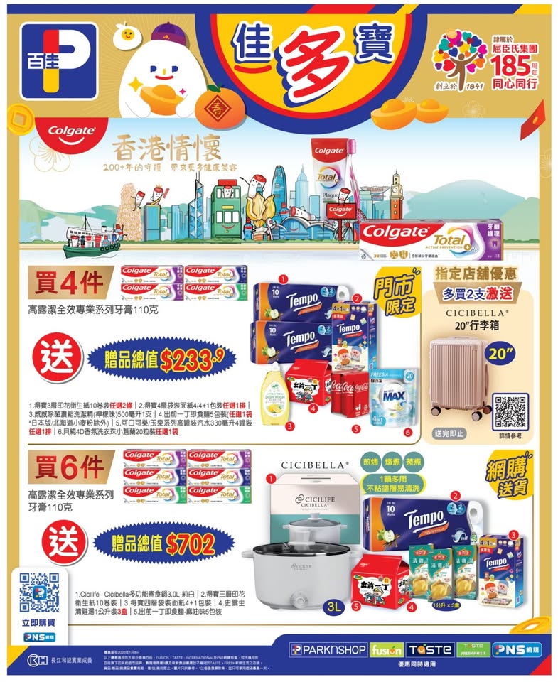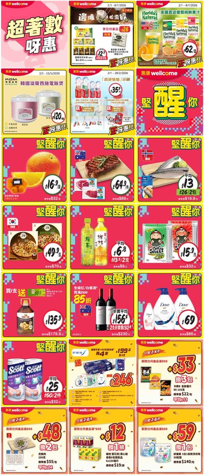 以是本日超市(百佳、惠康、萬寧、屈臣氏、OK、7-11)的最上優惠。