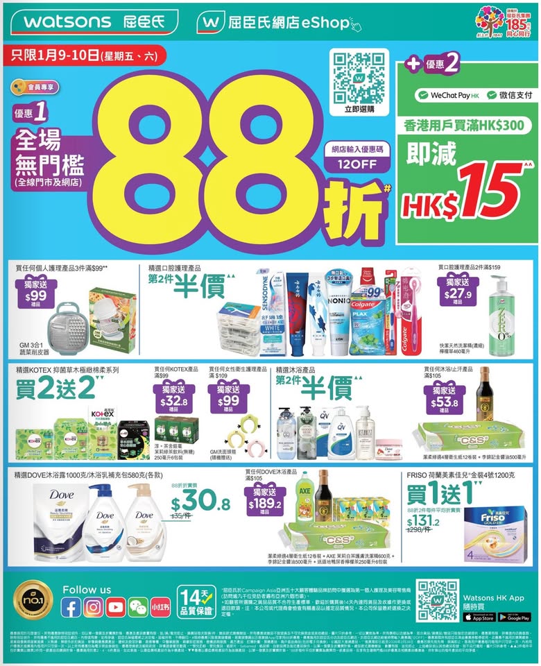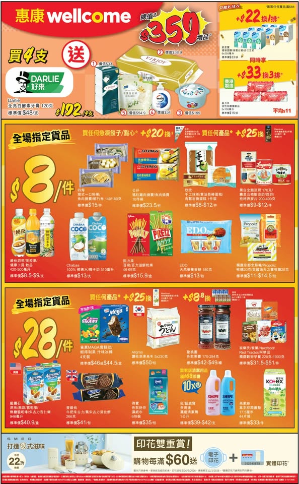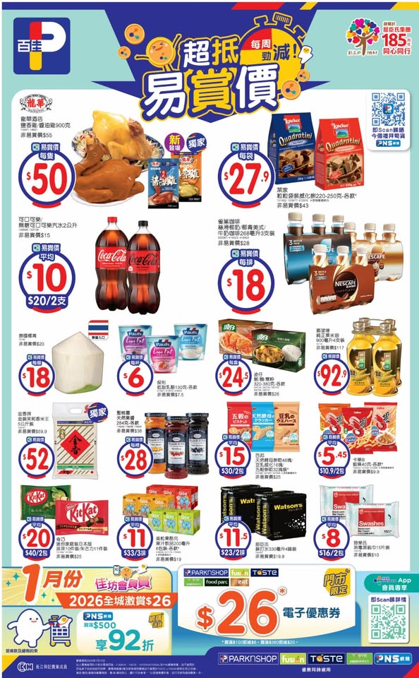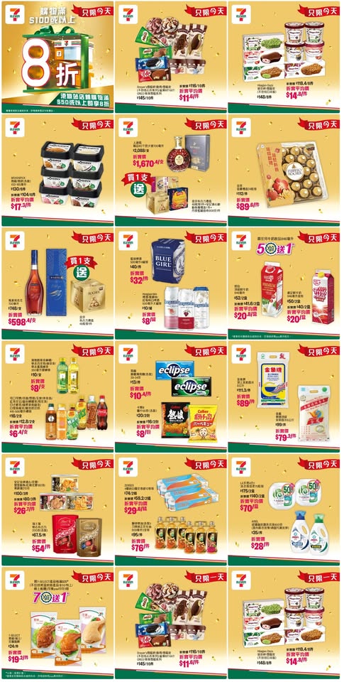 以是本日超市(百佳、惠康、萬寧、屈臣氏、OK、7-11)的最上優惠。