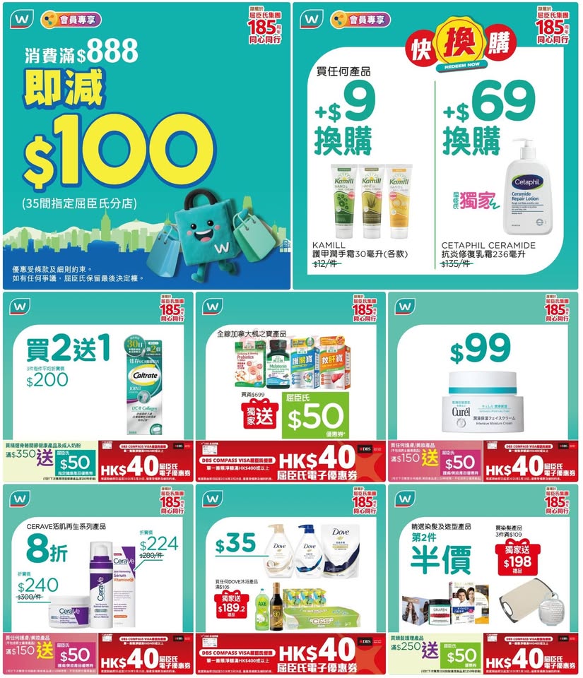 以是本日超市(百佳、惠康、萬寧、屈臣氏、OK、7-11)的最上優惠。