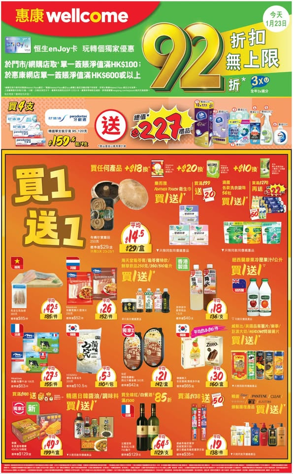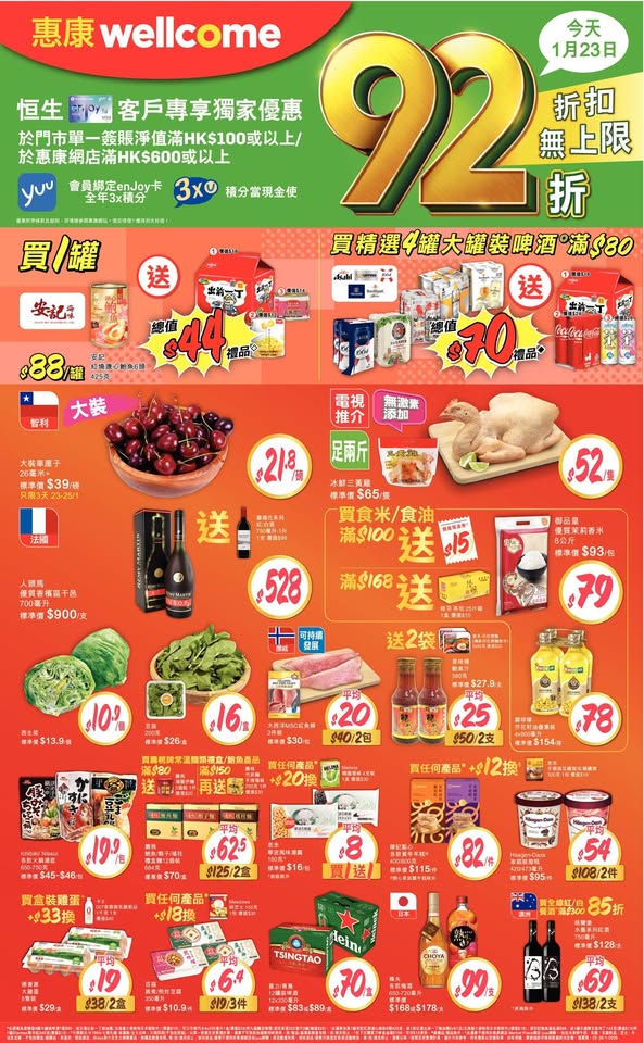1月23日各大超市優惠(惠康、百佳、7-11、OK等)