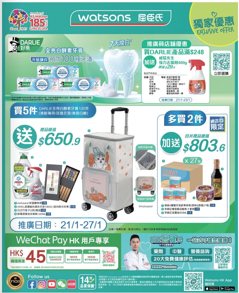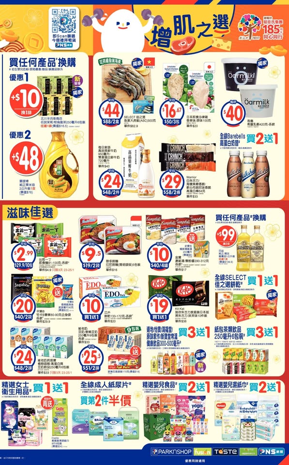 以是本日超市(百佳、惠康、萬寧、屈臣氏、OK、7-11)的最上優惠。