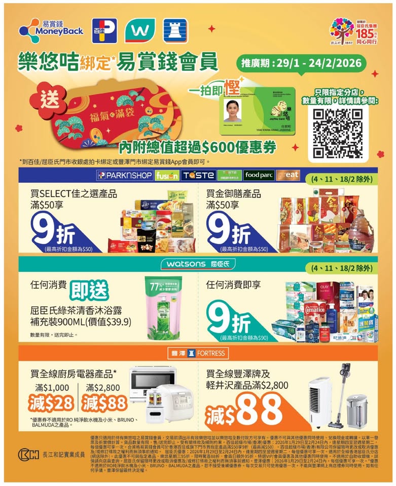 以是本日超市(百佳、惠康、萬寧、屈臣氏、OK、7-11)的最上優惠。