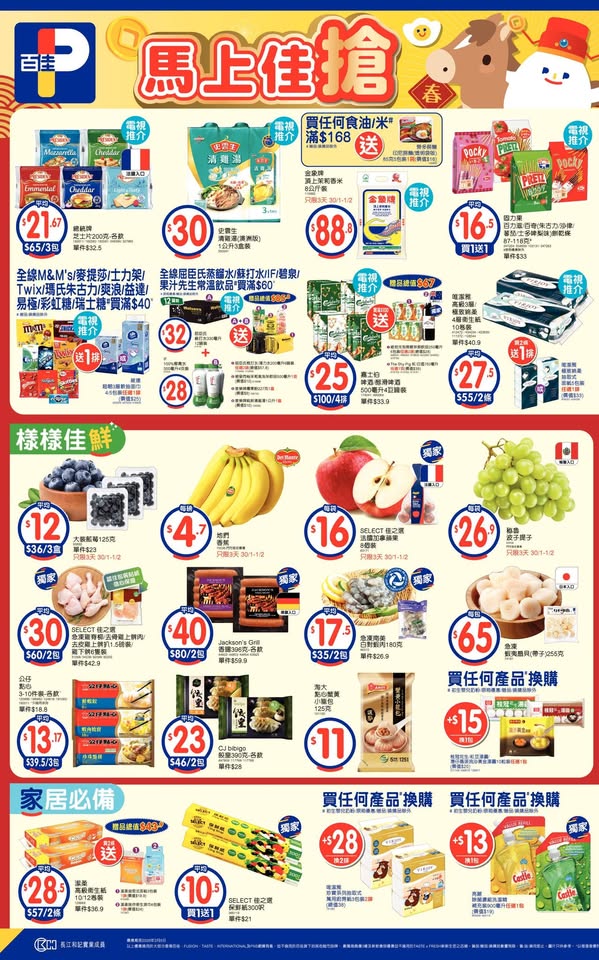 1月30日各大超市優惠(惠康、百佳、7-11、OK等)