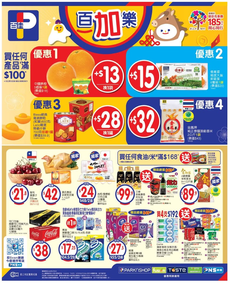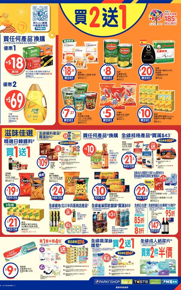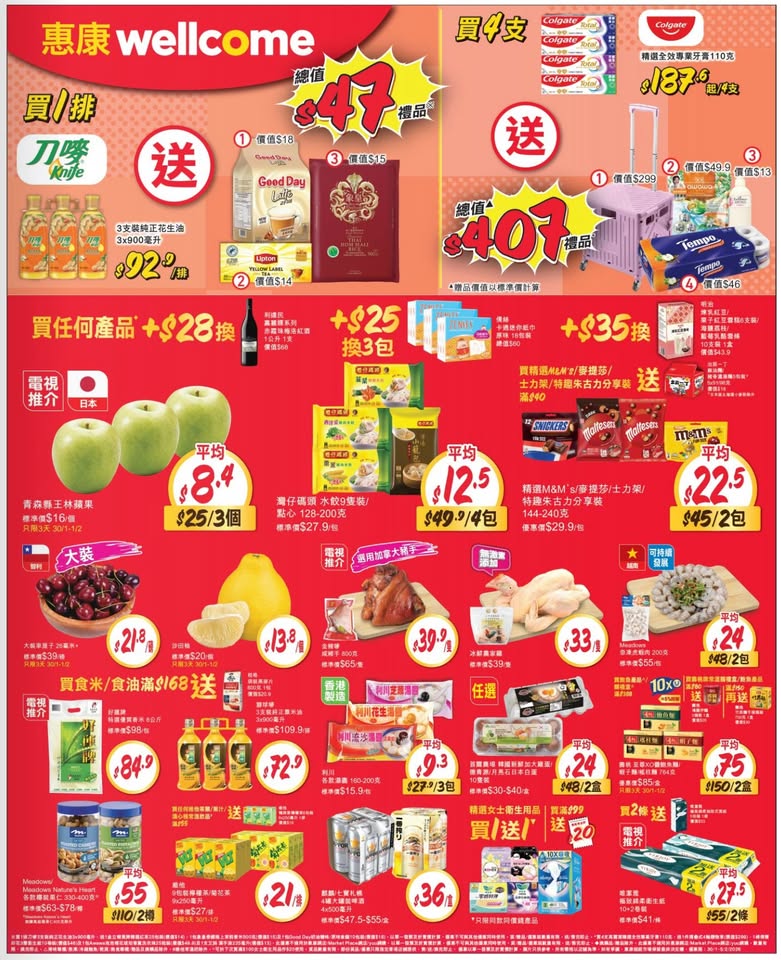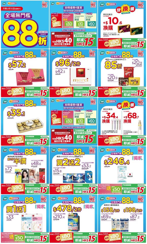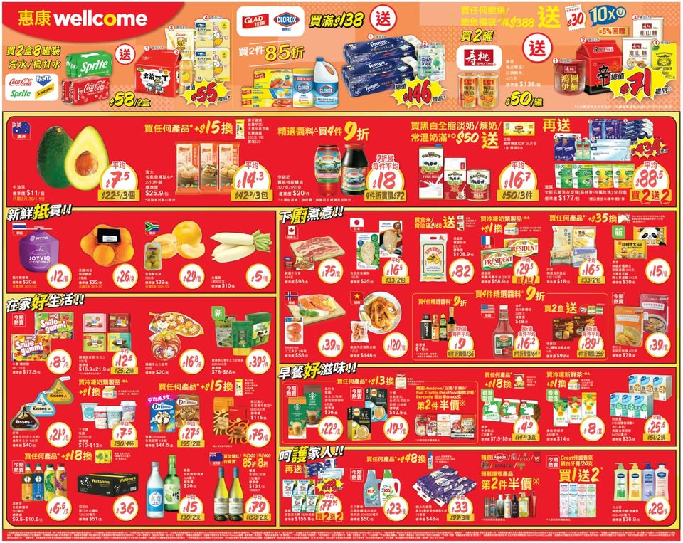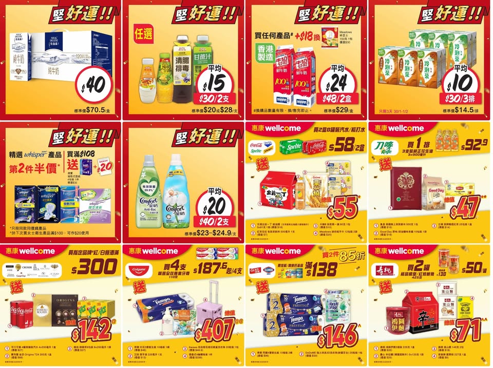以是本日超市(百佳、惠康、萬寧、屈臣氏、OK、7-11)的最上優惠。