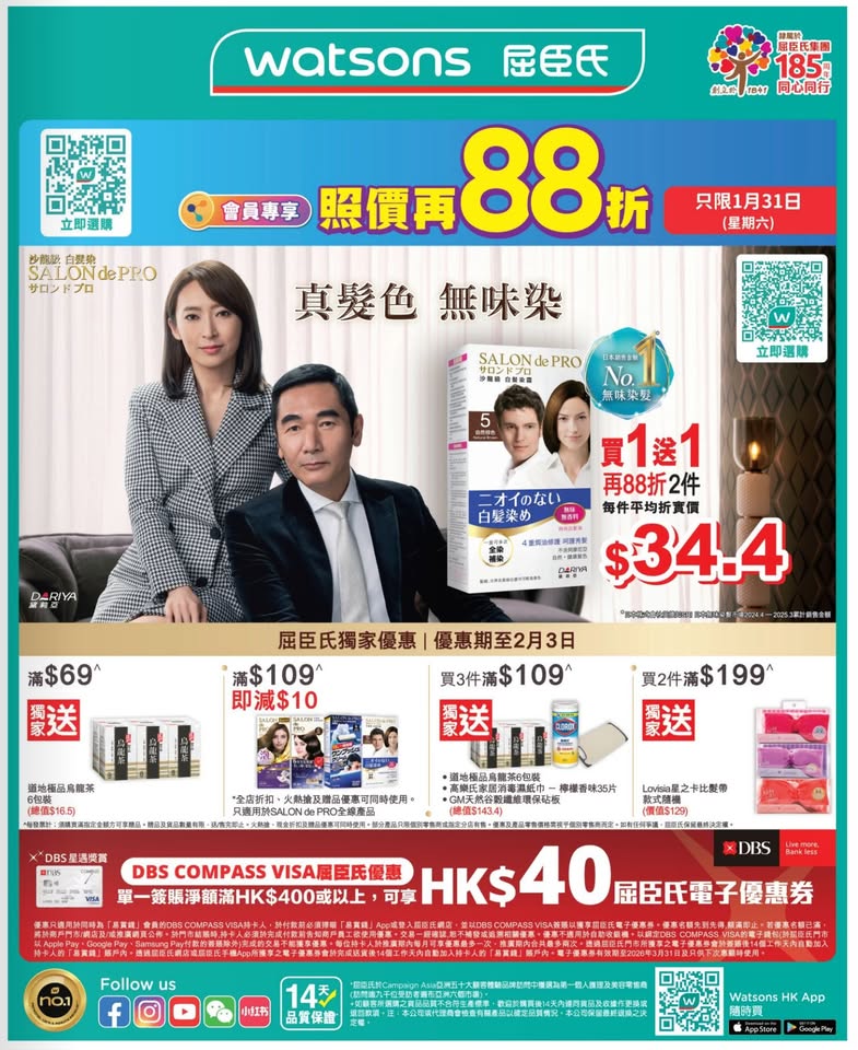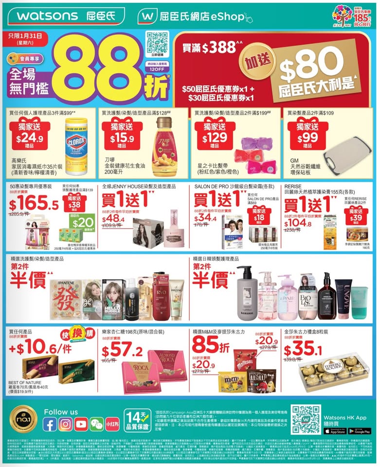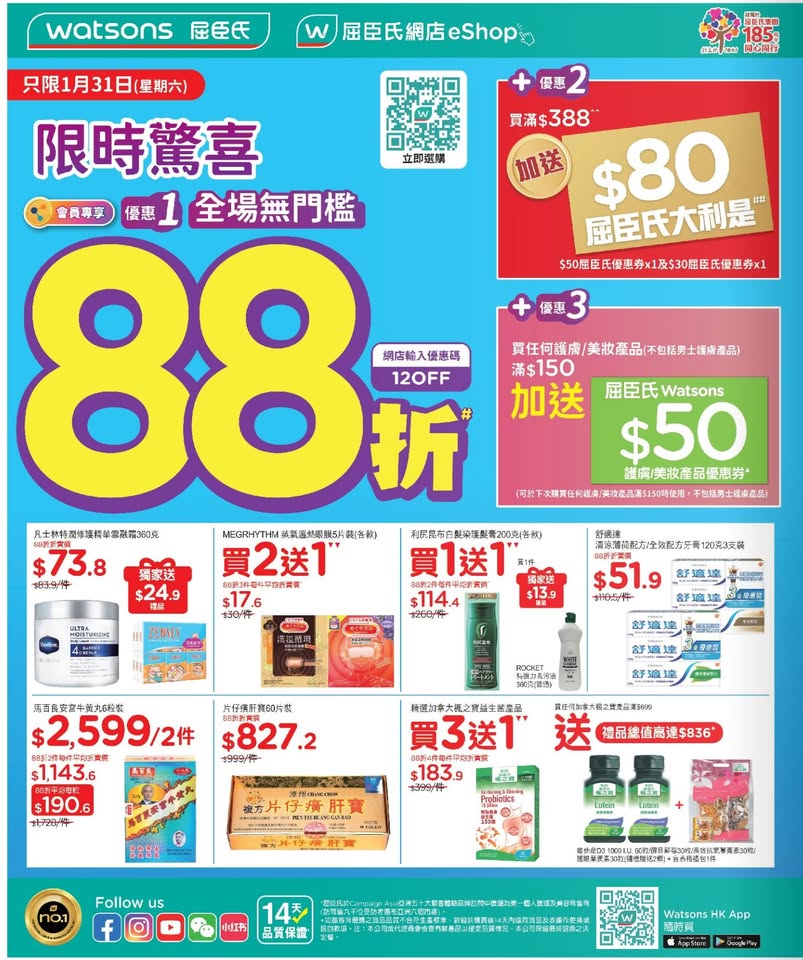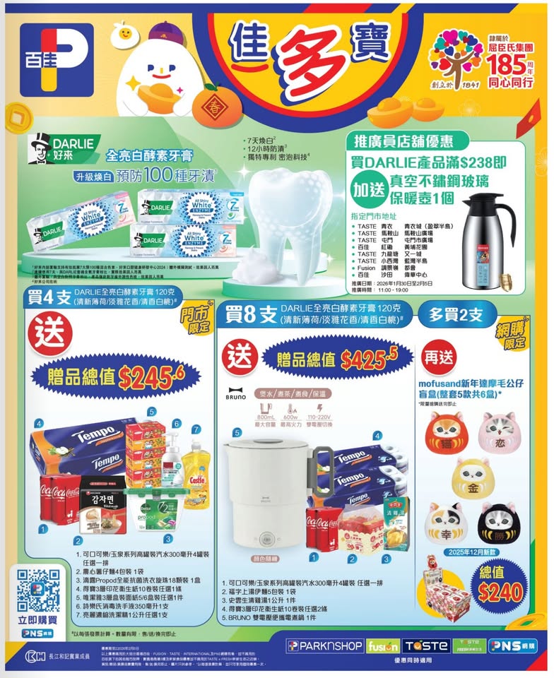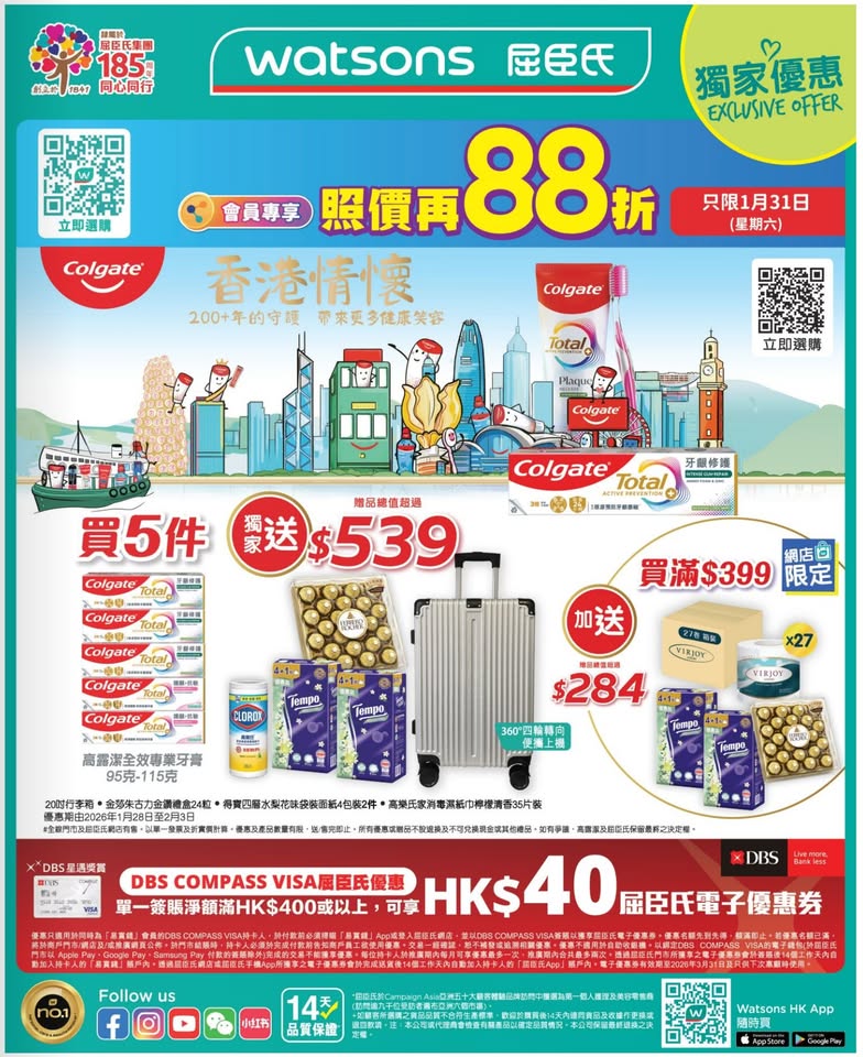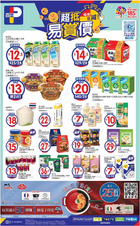 以是本日超市(百佳、惠康、萬寧、屈臣氏、OK、7-11)的最上優惠。