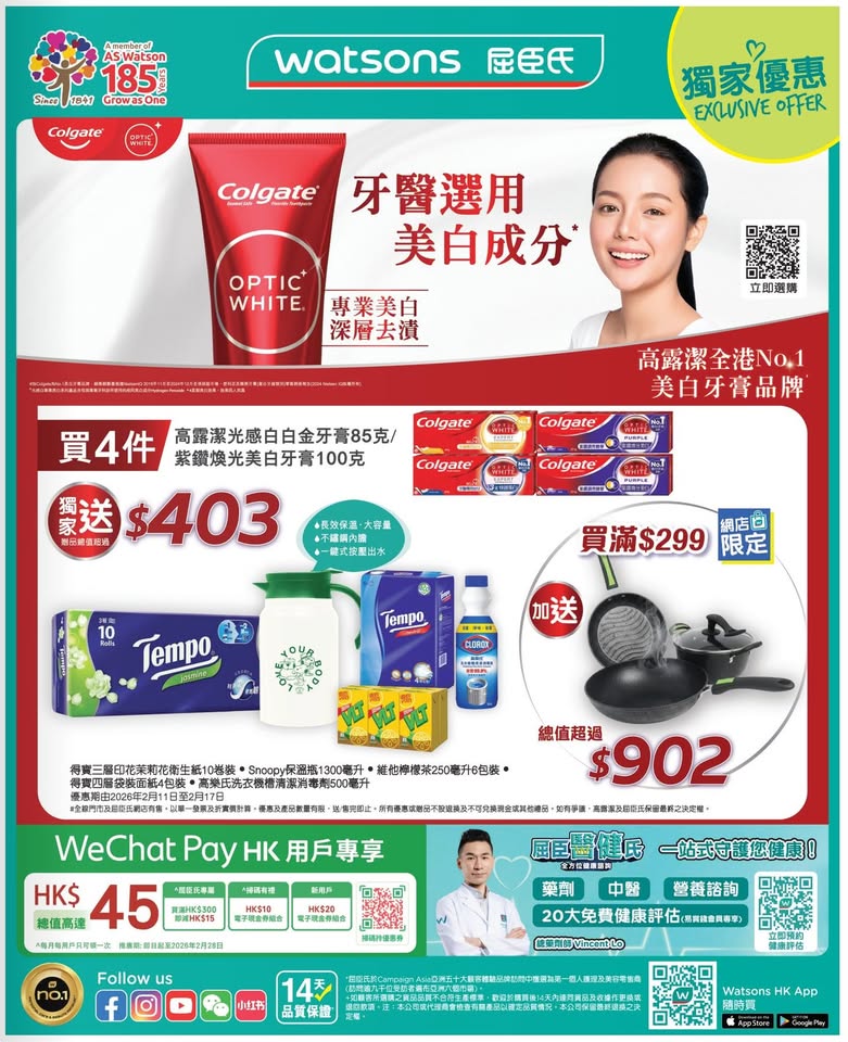 以是本日超市(百佳、惠康、萬寧、屈臣氏、OK、7-11)的最上優惠。