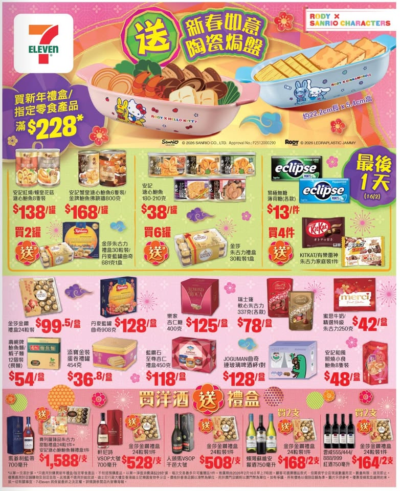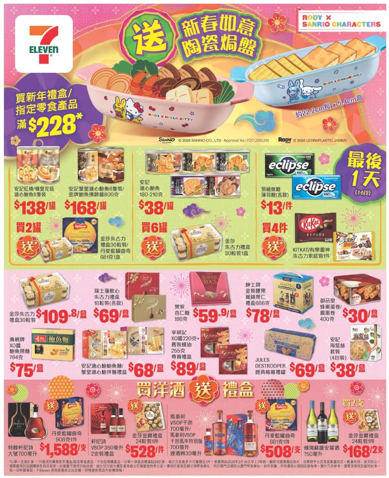 2月16日各大超市優惠(惠康、百佳、7-11、OK等)