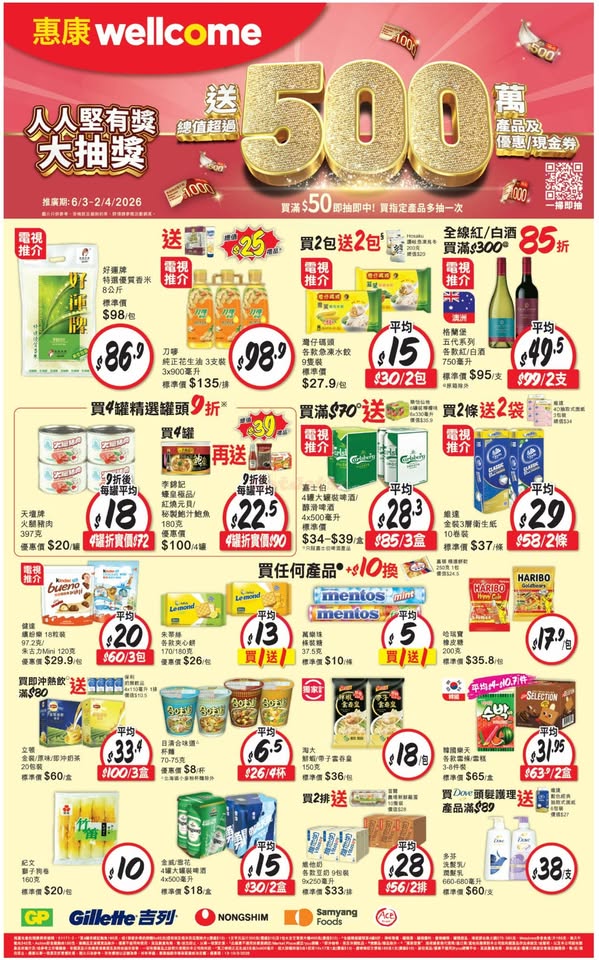 以是本日超市(百佳、惠康、萬寧、屈臣氏、OK、7-11)的最上優惠。