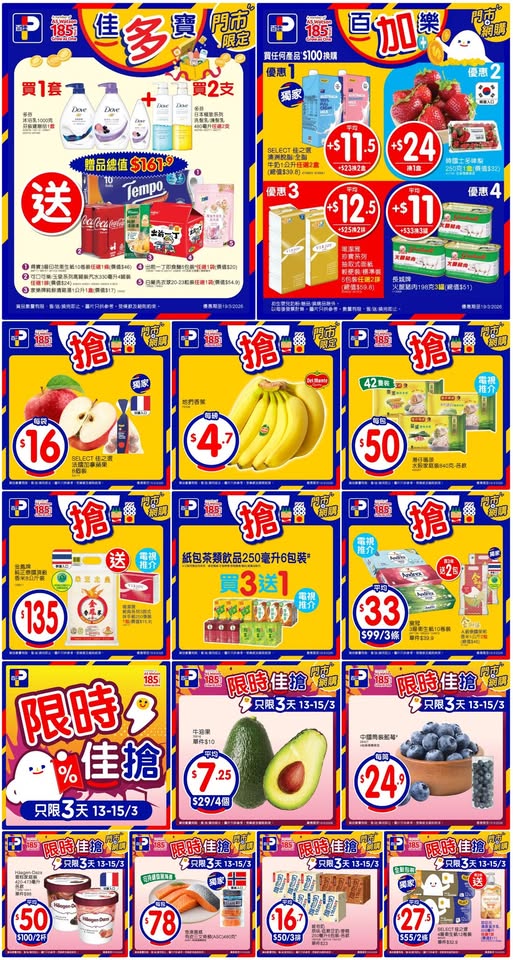 3月13日各大超市優惠(惠康、百佳、7-11、OK等)