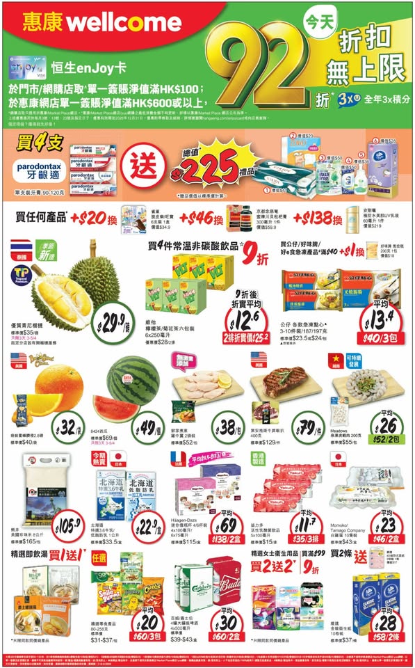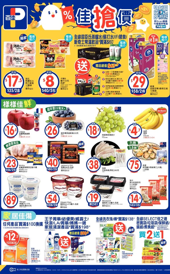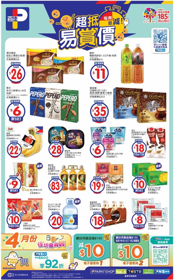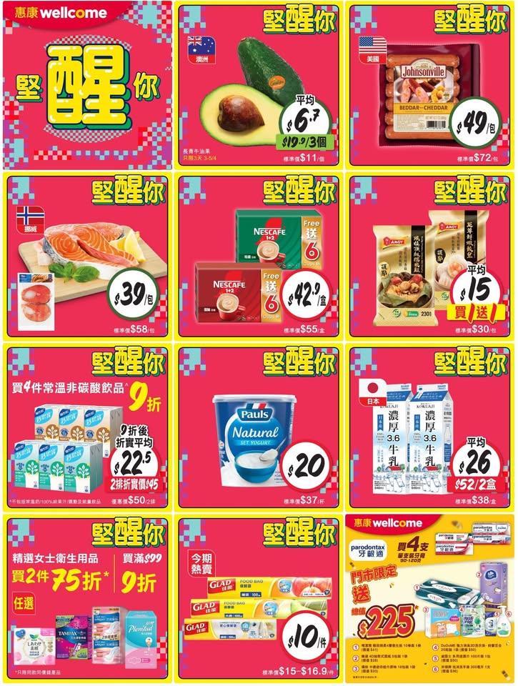 以是本日超市(百佳、惠康、萬寧、屈臣氏、OK、7-11)的最上優惠。