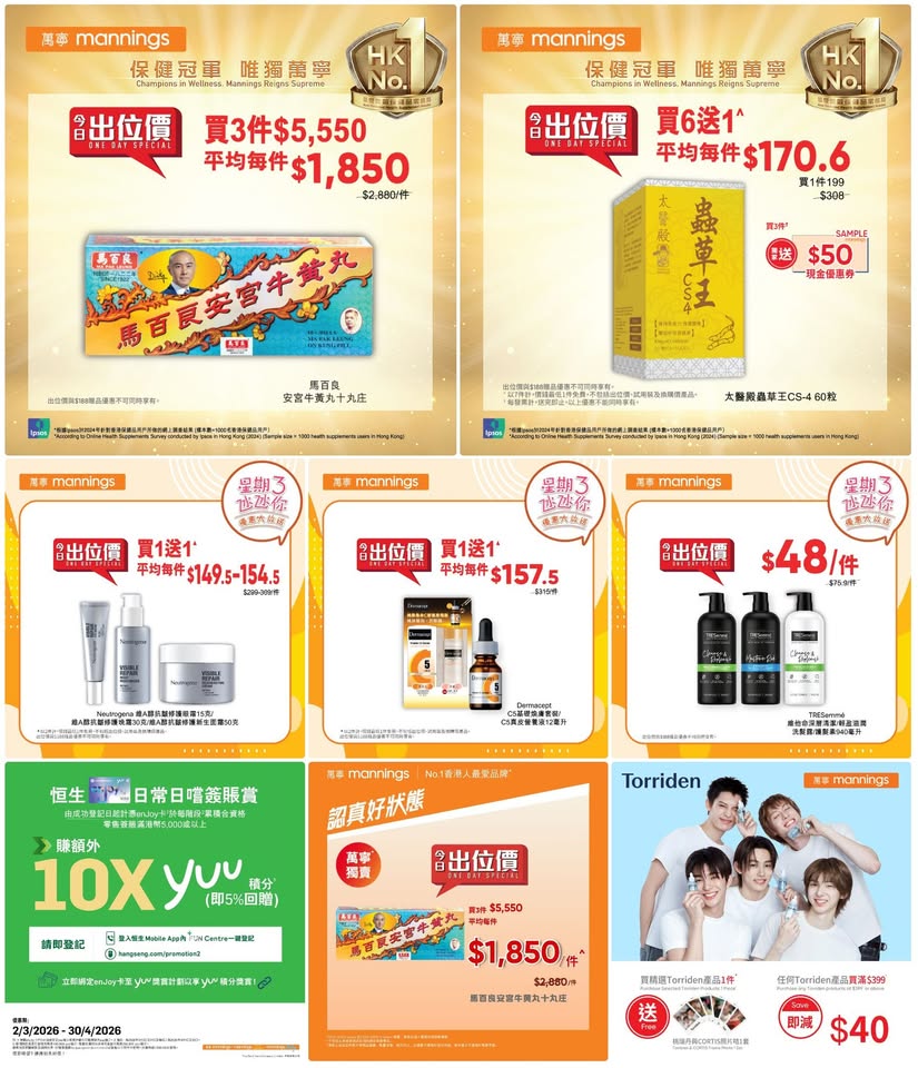 以是本日超市(百佳、惠康、萬寧、屈臣氏、OK、7-11)的最上優惠。