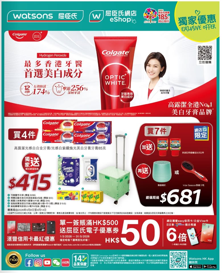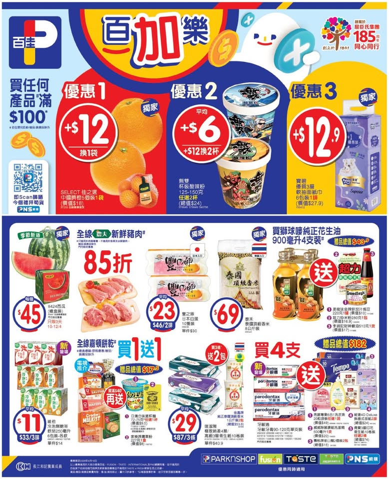 以是本日超市(百佳、惠康、萬寧、屈臣氏、OK、7-11)的最上優惠。
