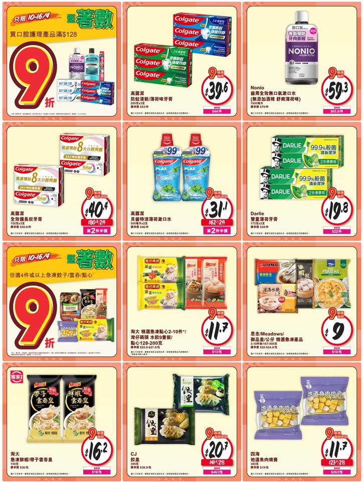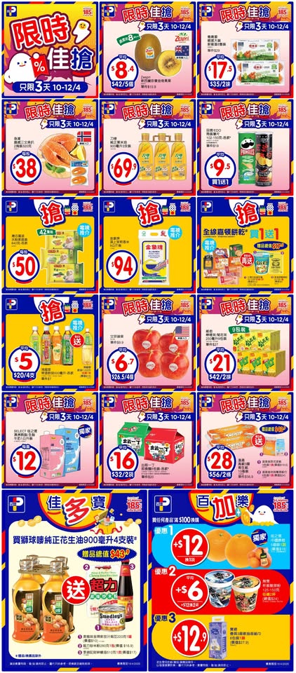 以是本日超市(百佳、惠康、萬寧、屈臣氏、OK、7-11)的最上優惠。 延伸閱讀: 10月9日各大超市優惠(惠康…