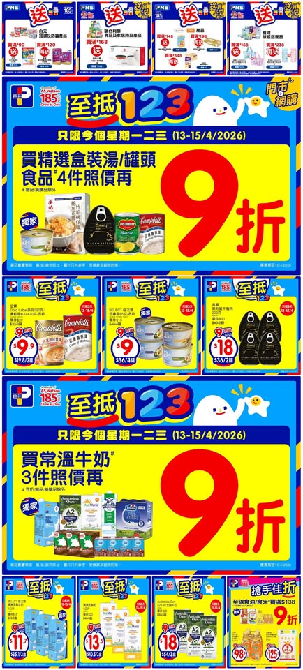 以是本日超市(百佳、惠康、萬寧、屈臣氏、OK、7-11)的最上優惠。