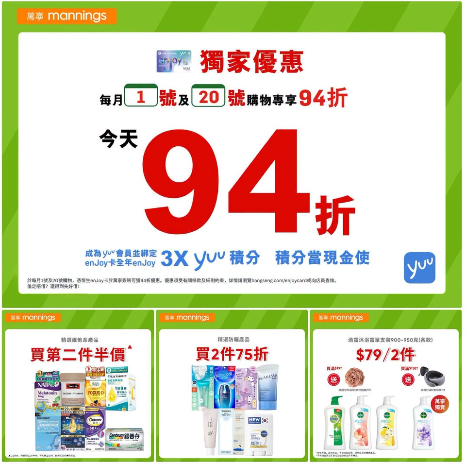 以是本日超市(百佳、惠康、萬寧、屈臣氏、OK、7-11)的最上優惠。