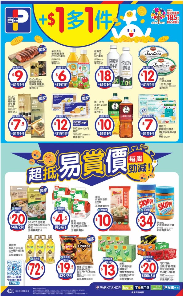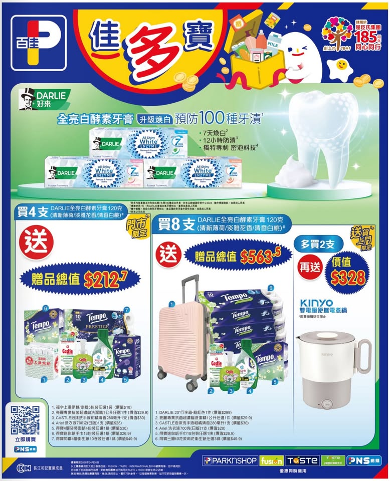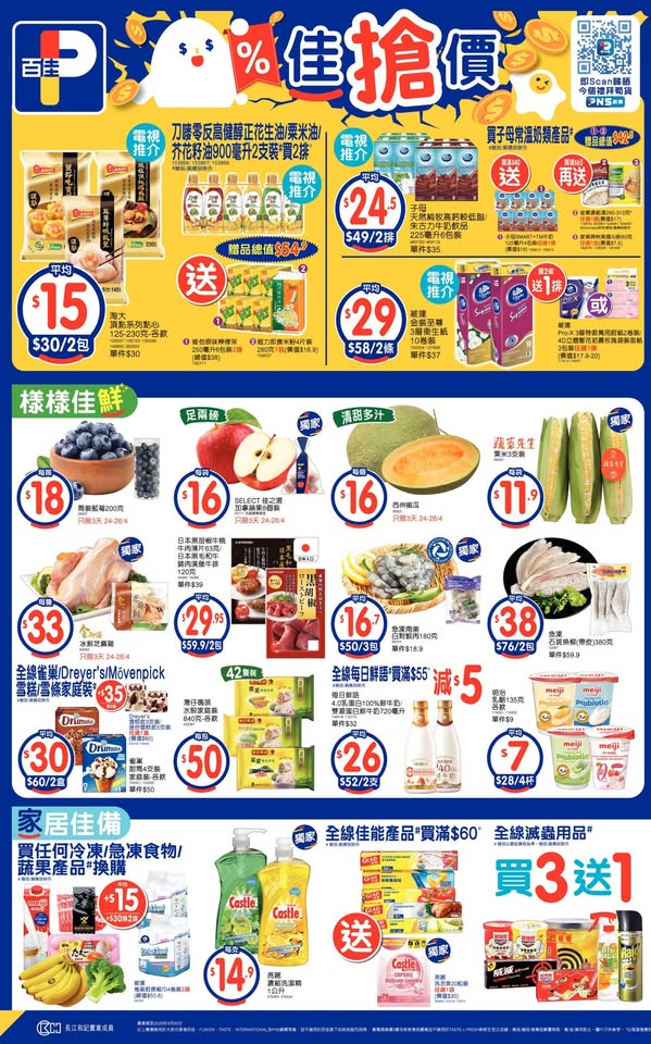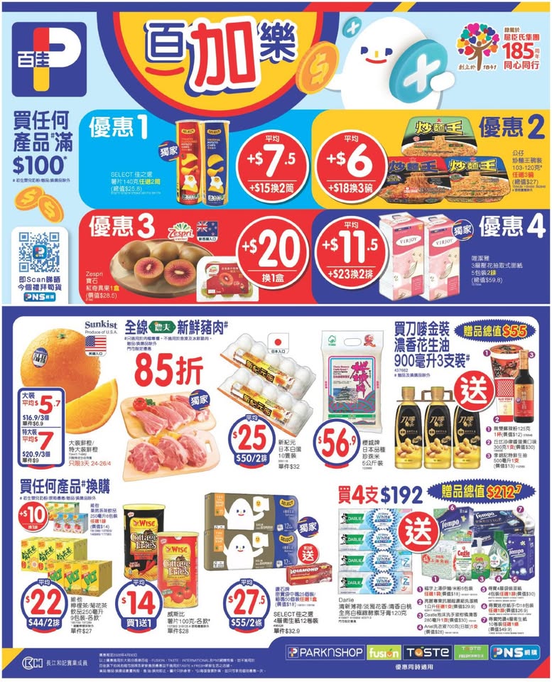 以是本日超市(百佳、惠康、萬寧、屈臣氏、OK、7-11)的最上優惠。